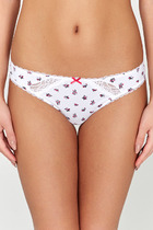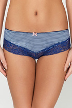 - Трусики-стринг из эластичной ткани в полоску, декорированные контрастным узким кружевом.- Передняя деталь декорирована бантиком.