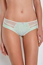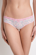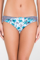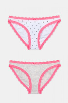 - Набор из двух трусиков из меланжевого трикотажа, декорированные ярким узким кружевом.- Одна из моделей декорирована контрастным принтом.