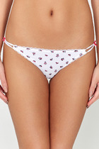 Трусики-стринг из узкого кружева и эластичной сетки, декорированы бантиками.