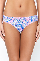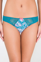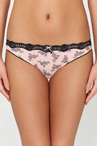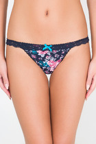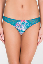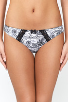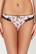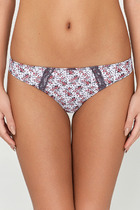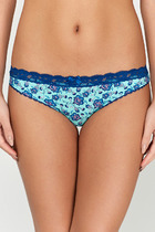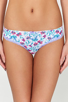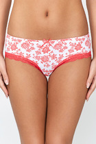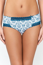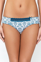 Трусики из принтованного эластичного материала со отделкой из кружева. Передняя деталь декорирована атласным бантиком. Широкая боковина.