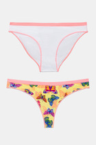 Комплект из двух трусиков из эластичного хлопка. Трусики-стринг с принтом "бабочки" и трусики-слипы с принтом на задней части.