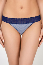 Трусики-стринги из эластичного хлопкового материала в полоску и широкой кружевной резинкой.