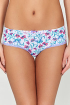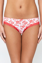 Трусики из принтованного эластичного хлопка с отделкой из кружева. Передняя деталь декорирована атласным бантиком. Широкая боковина.