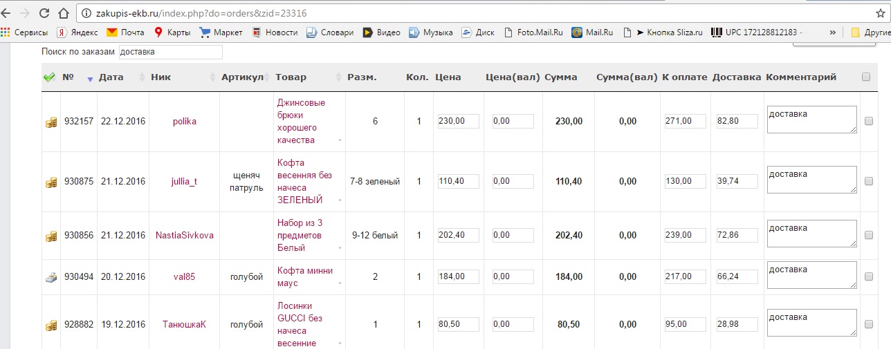 сейчас напишу, я думала что у вас видно сумму за доставку по каждому заказу, а оказывается нет. У меня это выглядит вот так, комментарий доставка это я для себя пишу не обращаме внимания фото кликабельно