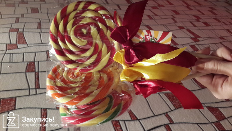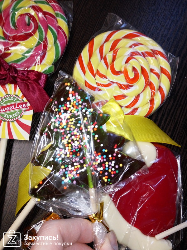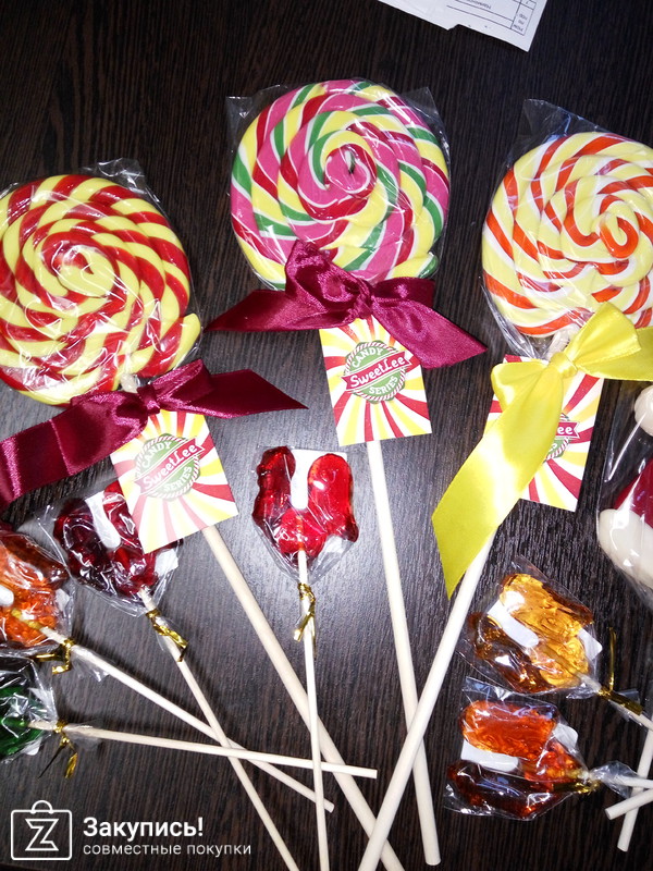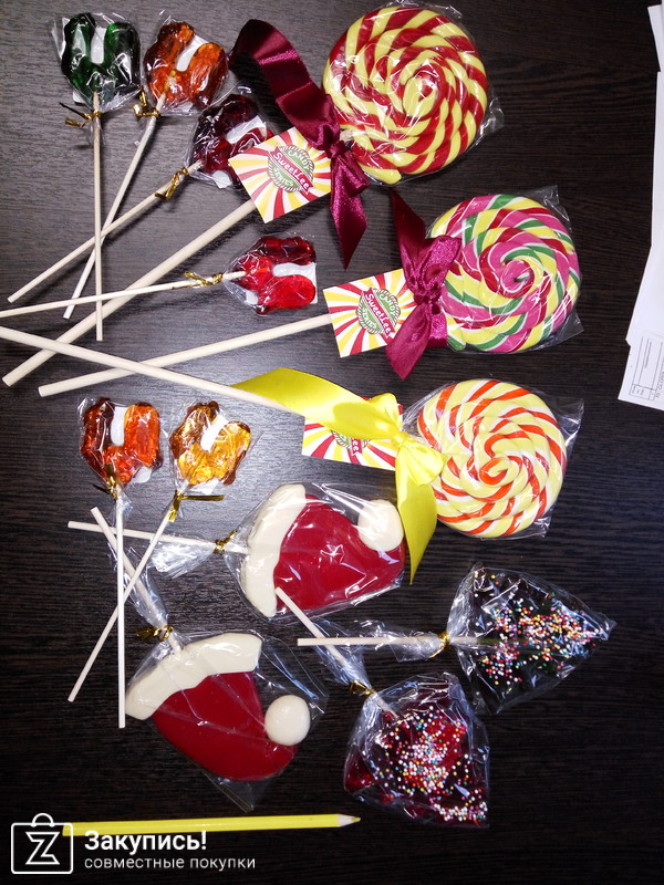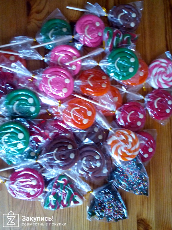 Заказывала разные леденцы. Красивые и ,как все отмечают, большие. Детям понравилось. Очень аккуратно упаковано,спасибо организатору за приложенный труд!