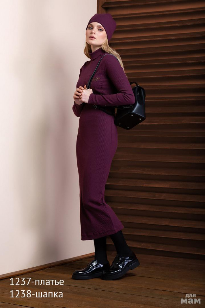 Очень стильная шапка в сочетании с платьем 1237 и курткой 1205 Цвет винный