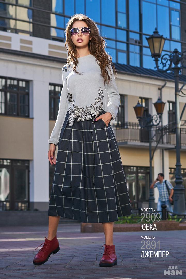 Стильная удлиненная юбка из мягкой джинсовой ткани с отстрочками. Модель с центральной застежкой на металлические пуговицы по планке. Юбка украшена объемными карманами, ремнем и дизайнерской брошью.