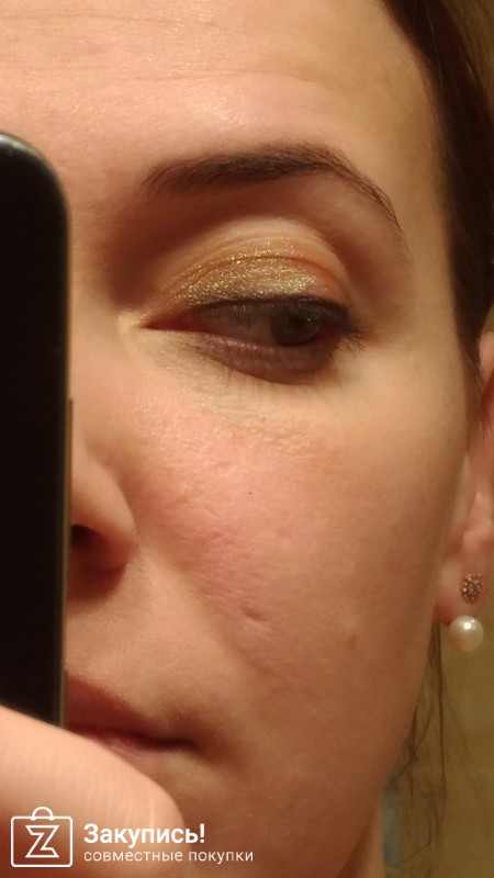 4. Тени оттенок es404, они супер.Рисую ими стрелки, легко ложатся,держатся весь день. А какой оттенок, зелено-болотный. Для карих глаз очень хорошо.