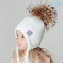 Hohloon Шапка зимняя с натуральным помпоном, Цвет молочный