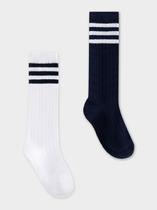 Комплект однотонных длинных носков с рюшей по краю верха для девочки. В комплекте 3 пары.— Описание у На сайте поставщика