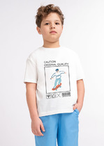 Базовая футболка для мальчика, выполнена из 100% хлопка. Спереди украшена принтом.— Описание у На сайте поставщика