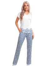 Брюки прямые для дома из хлопкового трикотажного полотна. Пояс на внутренней резинке, боковые карманы с отрезным бочком.— Описание у На сайте поставщика