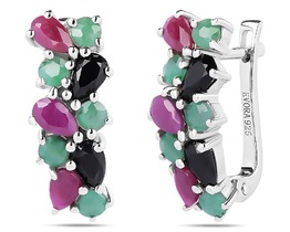 Серьги, арт.658560 Серебро Серебро 925, 4,75 гр., изумруд берилл , рубин корунд , сапфир корунд , шпинель