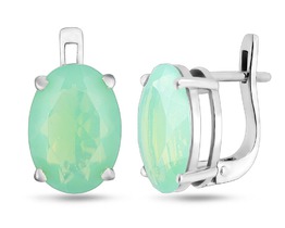 Серьги, арт.655912 Серебро Серебро 925, 4,69 гр., лунный камень зеленый