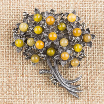 БРОШЬ "ДИКАЯ ЯБЛОНЯ" С ЖЕЛТЫМ КВАРЦЕМ