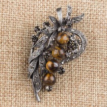 БРОШЬ "ПЛЕТЕНИЕ СОЦВЕТИЙ" С ТИГРОВЫМ ГЛАЗОМ