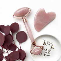 НАБОР ДЛЯ МАССАЖА (РОЛЛЕР + ГУАША) ИЗ КАМНЯ РОЗОВЫЙ КВАРЦ