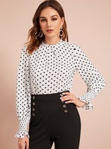 Блузка с манжетой и оборкой в ​​горошек