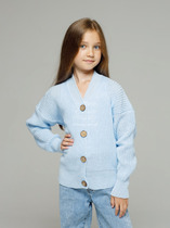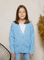 Кардиган для девочекРазмер: 116-128см ( one size)Состав: акрил 100%Артикул: g-019Страна производства: РоссияЦвет: голубой