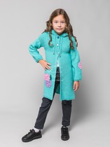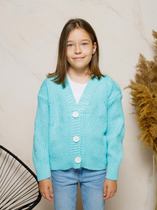 Кардиган для девочекРазмер: 116-128см ( one size)Состав: акрил 100%Артикул: g-019Страна производства: РоссияЦвет: морская волна