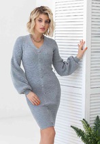ВЯЗАНОЕ ПЛАТЬЕ РЕЗИНКА С ДУТЫМИ РУКАВАМИ 2349 серый