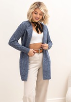 КАРДИГАН С ЦЕЛЬНОВЯЗАНЫМИ КАРМАНАМИ 3627 джинсовый