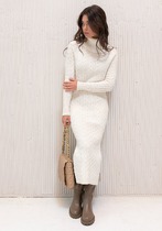 ВЯЗАНОЕ ПЛАТЬЕ РЕЗИНКА С ДУТЫМИ РУКАВАМИ 2349 пудра