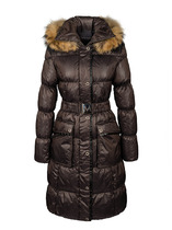 Пальто женское утеп. пух. CANDI (шоколад) енот натуральный