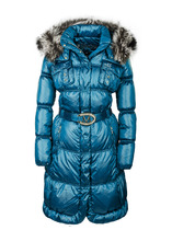 Пальто женское утеп. пух. FIBI1 енот (голубой)