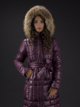 Пальто пух. жен. ADELE енот натур. (баклажан)