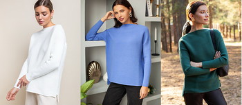 Джемпер с объемным воротом выполнен из футера-трехнитки с начесом. Трендовая ассиметричная модель привлечет внимание из ряда классических худи из футера. Сочетайте в костюме с брюками D44.124 и D44.129