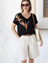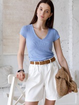 Футболка с V вырезом из эластичного трикотажа кашкорсе