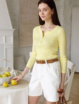 Лонгслив облегающий из фактурного трикотажа в рубчик с круглым вырезом на пугови