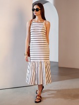 Летнее платье миди в полоску из гладкого эластичного хлопка