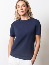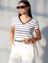 Базовая футболка в полоску из премиального хлопка с V образным вырезом