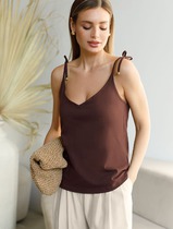 Топ с V-вырезом на регулируемых бретелях-завязках из фактурного 100% хлопка флам