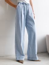 Широкие джинсы с поясом на резинке и с защипами из облегченного денима