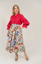Описание: Юбка, пояс на резинке, карманы, складки, длина с поясом 86см