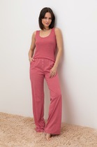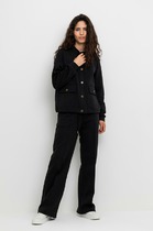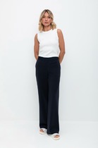 Широкие брюки из шерсти с завышенной линией талии. Застегивается спереди на молнию и пуговицу. Пояс со шлевками для ремня.