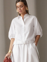 Блузка классического прямого кроя с длинными рукавами на манжетах и застежкой на планку с пуговицами.— Описание у На сайте поставщика