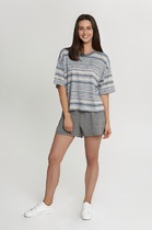 Футболка свободного кроя с фигурным низом и манжетами. шорты свободного кроя, средней длины с разрезами— Описание у На сайте поставщика