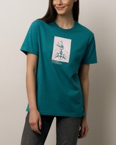 Футболка свободного силуэта. Спущенное плечо. Горловина из двух деталей, из рибаны. Декор: шелкотрафаретная печать.