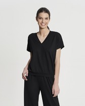 Футболка V-neck с цельнокроенным рукавом. Притачной пояс по низу футболки из основной ткани.— Описание у На сайте поставщика