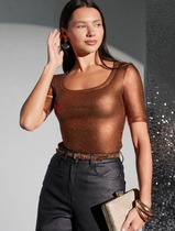 Vilatte Футболка облегающая из хлопка в рубчик с вырезом лодочка с матовым покры