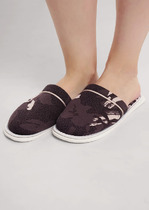 Домашние тапочки с закрытым носом из хлопкового трикотажного полотна , сверху нашивка бант. Толстая подошва.— Описание у На сайте поставщика