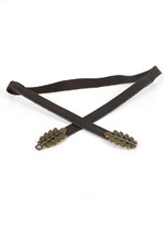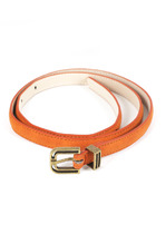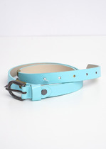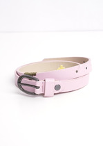 Узкий ремень из лакированной кожи с металлическими деталями. Застёжка на пряжку.— Описание у На сайте поставщика