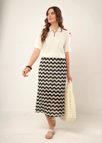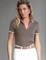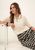Джемпер из текстильного полотна. По горловине вязаный воротник с обтачкой. Короткий втачной рукав. Боковые разрезы.— Описание у На сайте поставщика