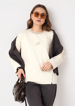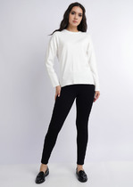 Джемпер из текстильного полотна. По горловине вязаный воротник с обтачкой. По низу рукава и изделия -вязаная отделка.— Описание у На сайте поставщика