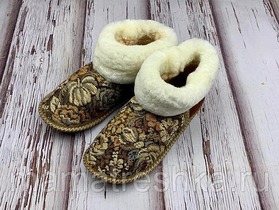 Чуни домашние из овчины, со вставкой из гобелена.— Описание у На сайте поставщика