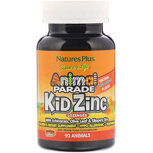 Natures Plus, Source of Life, Animal Parade, пастилки Kid Zinc, вкус натурального мандарина, 90 животных